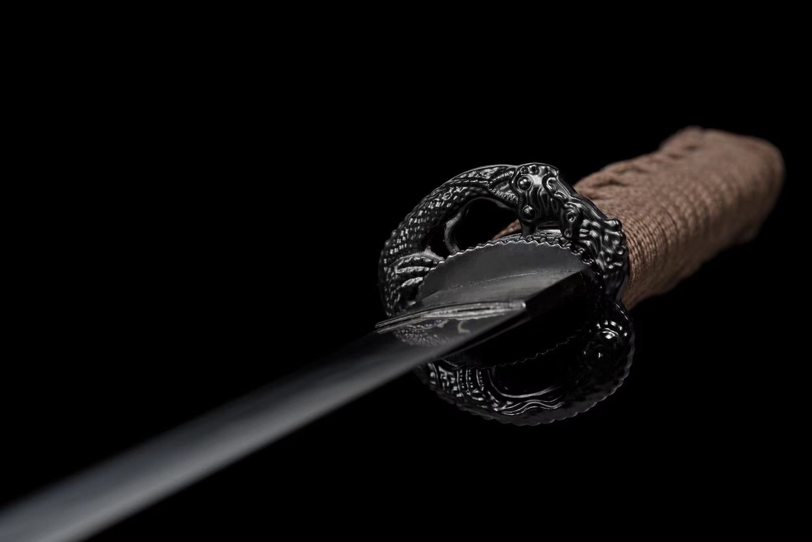 - Guard (Tsuba 鍔): Black iron alloy coiled dragon.
