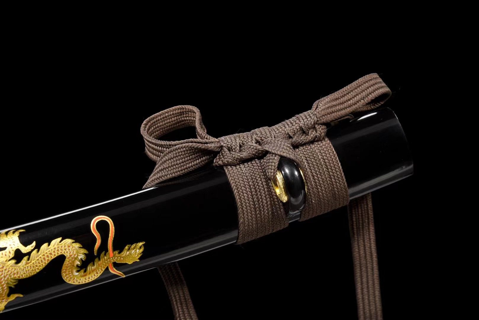 - Scabbard (Saya 鞘): Black lacquered wooden scabbard with painted golden dragon.