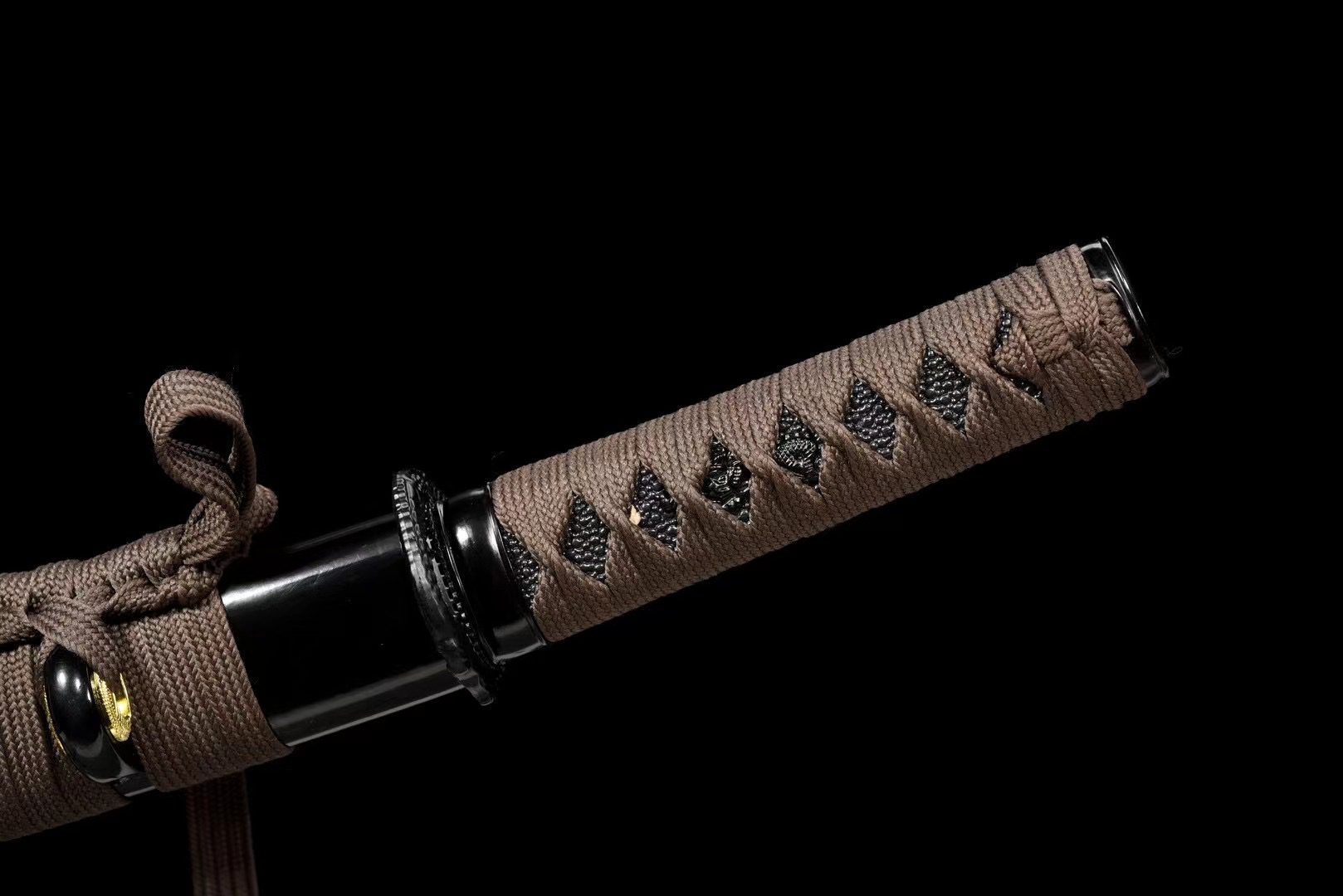 - Tsuka-ITO (柄糸): Brown diamond pattern weave above the handle.