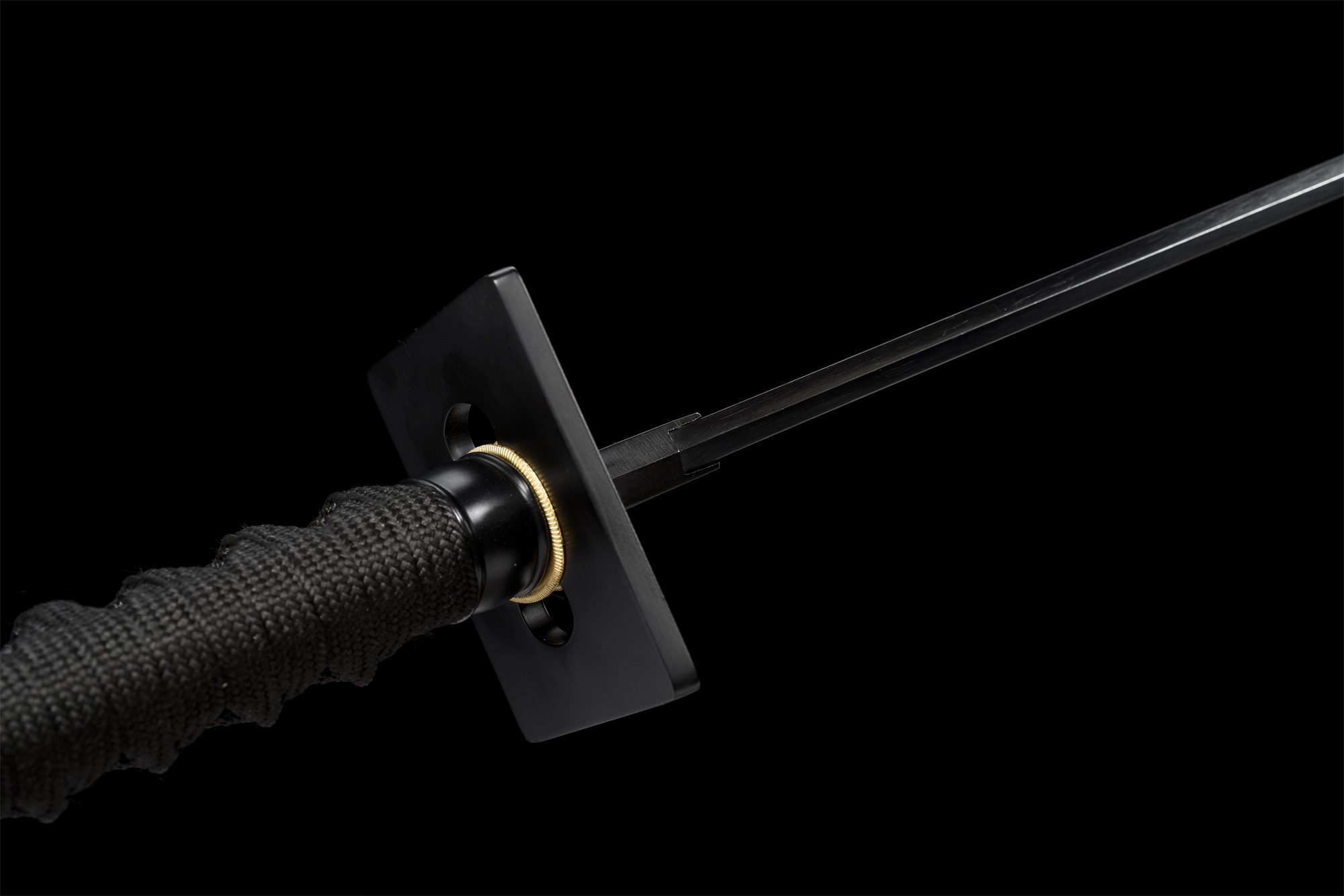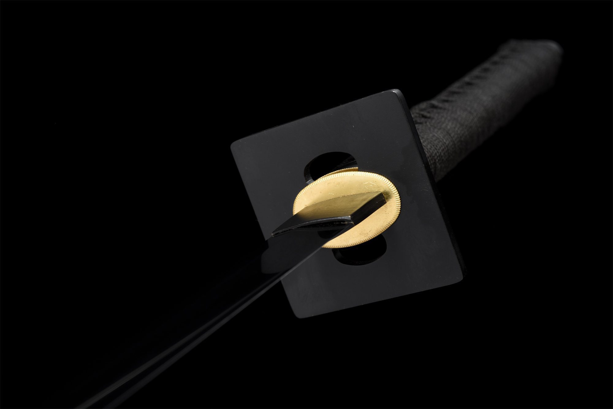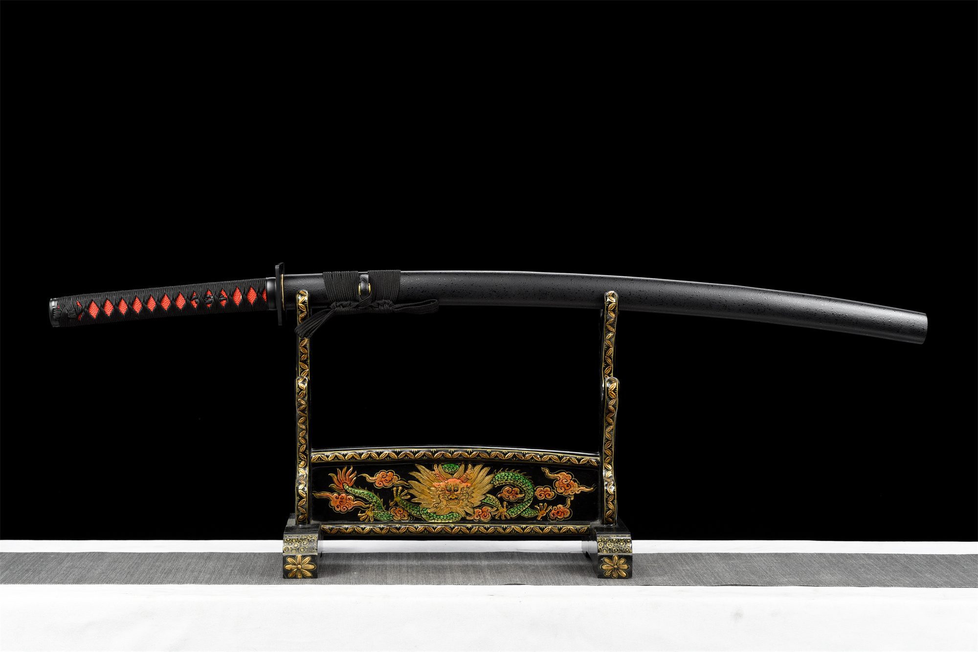 The Black Blade katana sword takes its name from its most striking feature: its deep black blade, reminiscent of night and mystery. This dark hue, achieved through a specialized steel treatment, traditionally symbolizes the warrior’s discretion and silent strength. In Japanese culture, black also represents understated elegance and unwavering determination, making this weapon a symbol of controlled power.