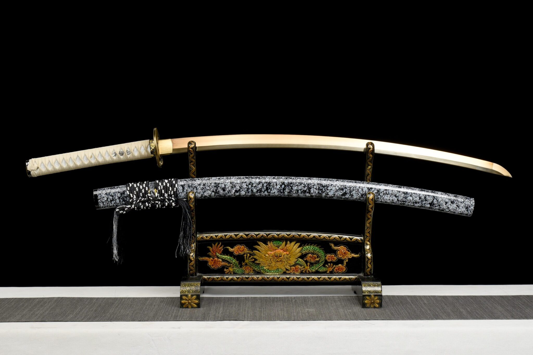The name Golden Blade evokes the preciousness and noble brilliance of this exceptional katana. In Japanese culture, gold symbolizes spiritual purity and artisanal perfection, qualities that this katana perfectly embodies through its refined details.