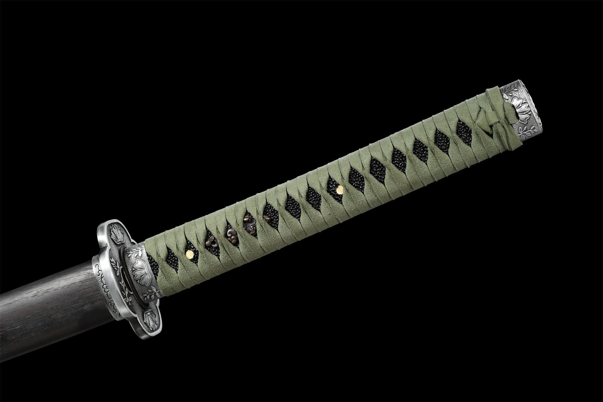 - Tsuka-ITO (柄糸): Green braided diamond pattern above the handle.