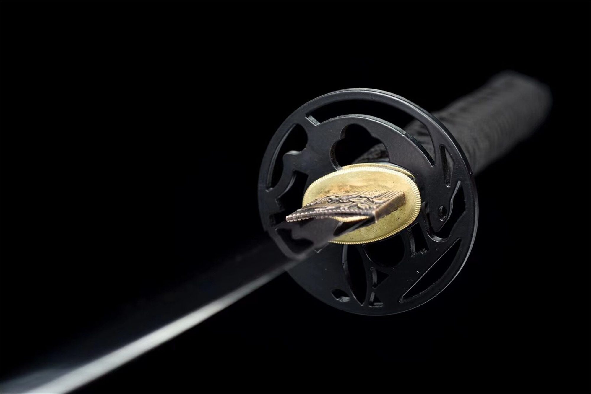 - Guard (Tsuba 鍔): Round and hollow in black alloy.