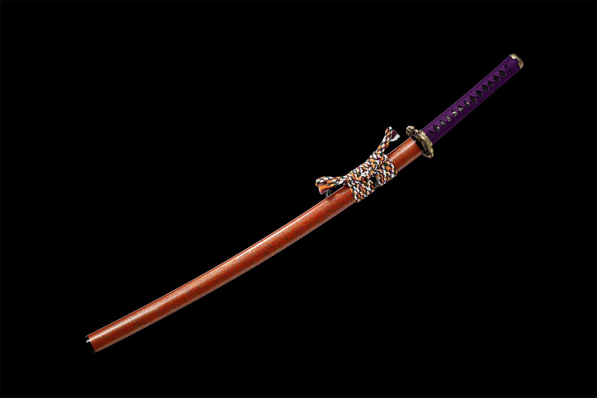- Sageo (下げ緒): Orange, green, purple, and white braiding.