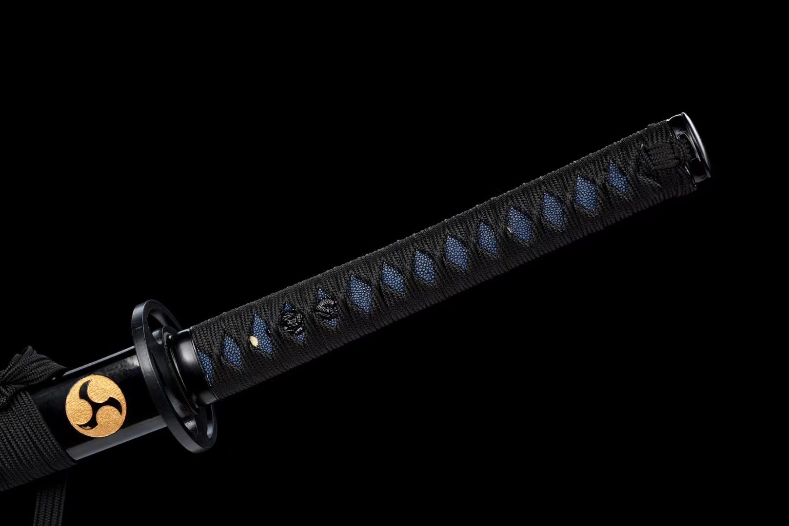 - Handle (Tsuka 柄): made of wood covered with faux midnight blue stingray skin.
