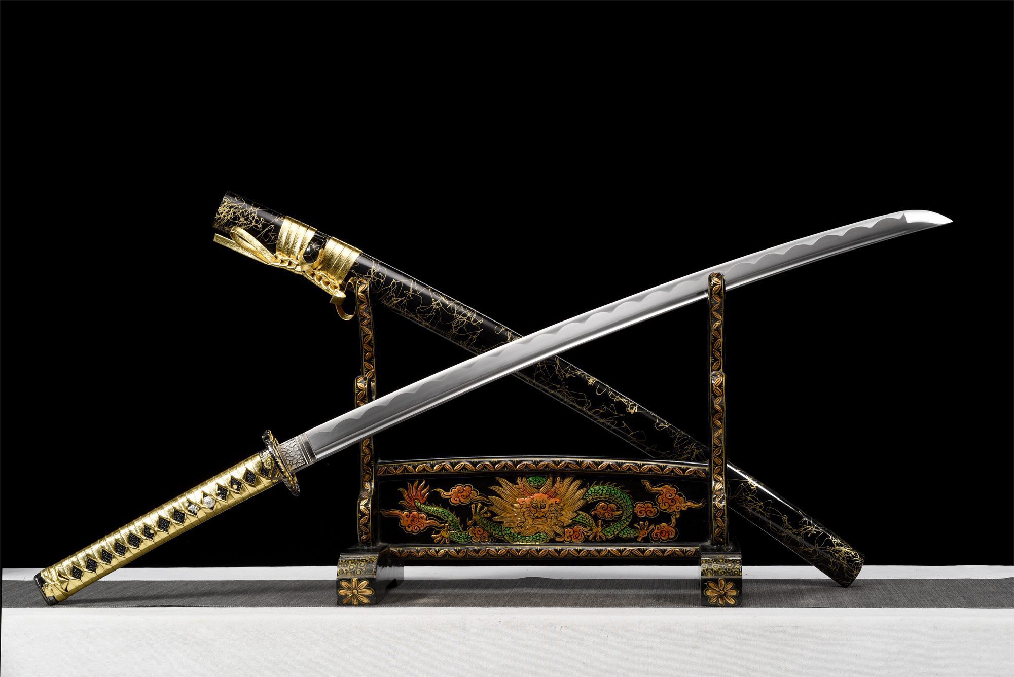 - Scabbard (Saya 鞘): Black and gold lacquered wood.