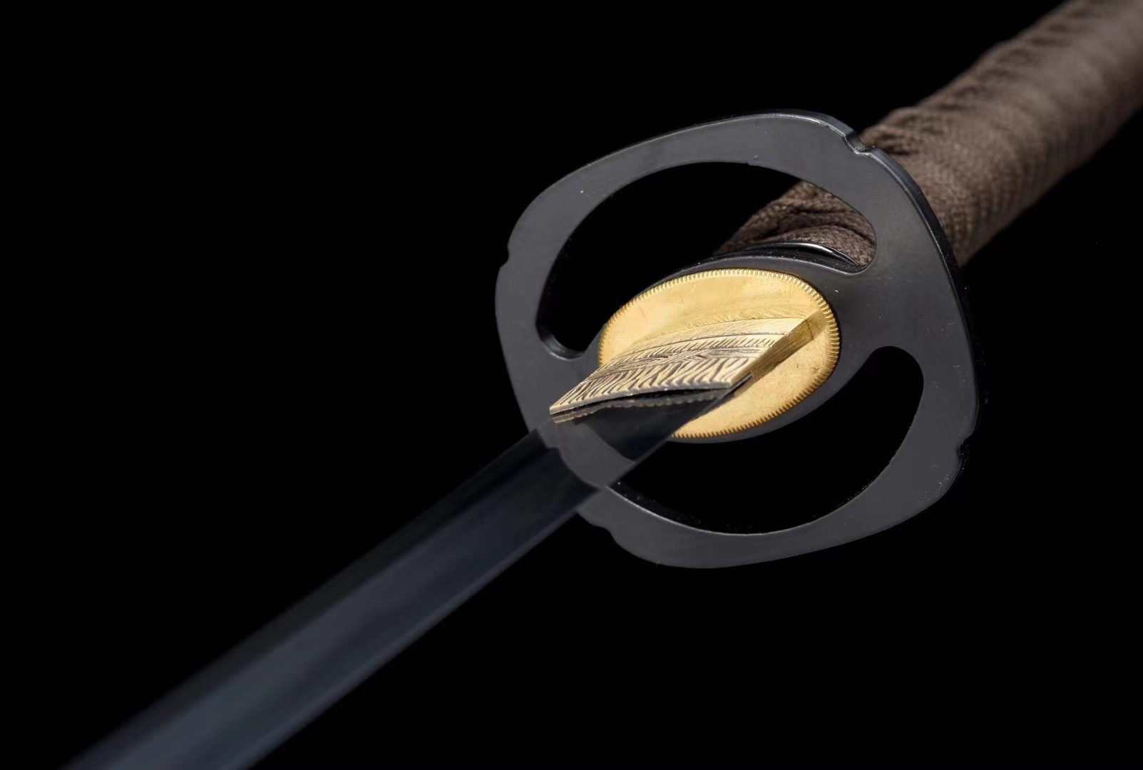 - Fuchi (縁): smooth black alloy.