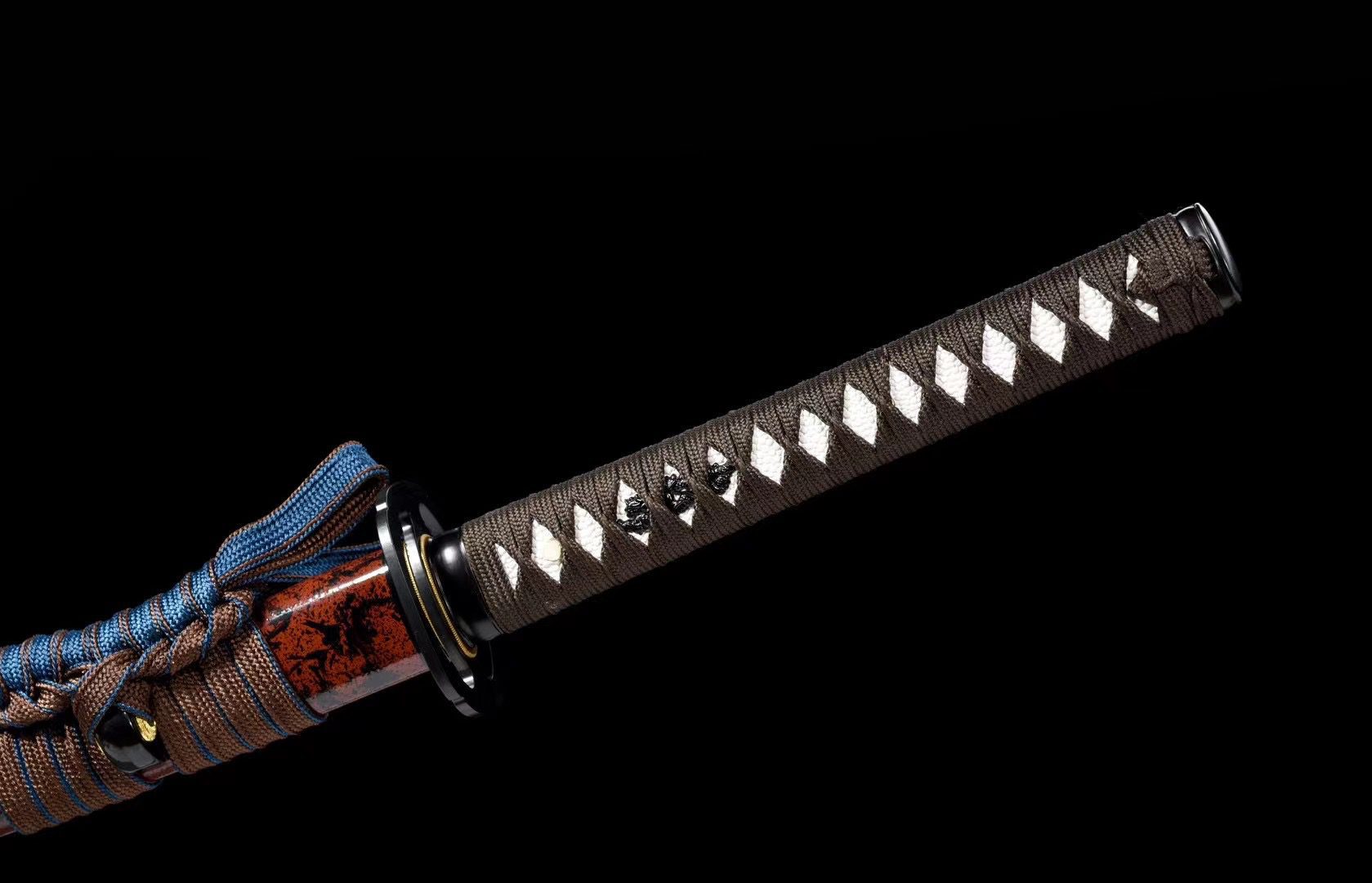 - Tsuka-ITO (柄糸): brown braided above the handle in a diamond pattern.