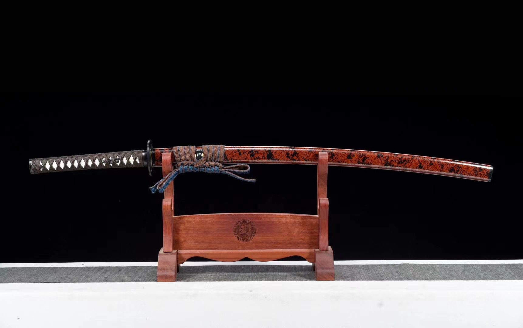 - Scabbard (Saya 鞘): black and red lacquered wooden scabbard with black Kojiri and Koiguchi.