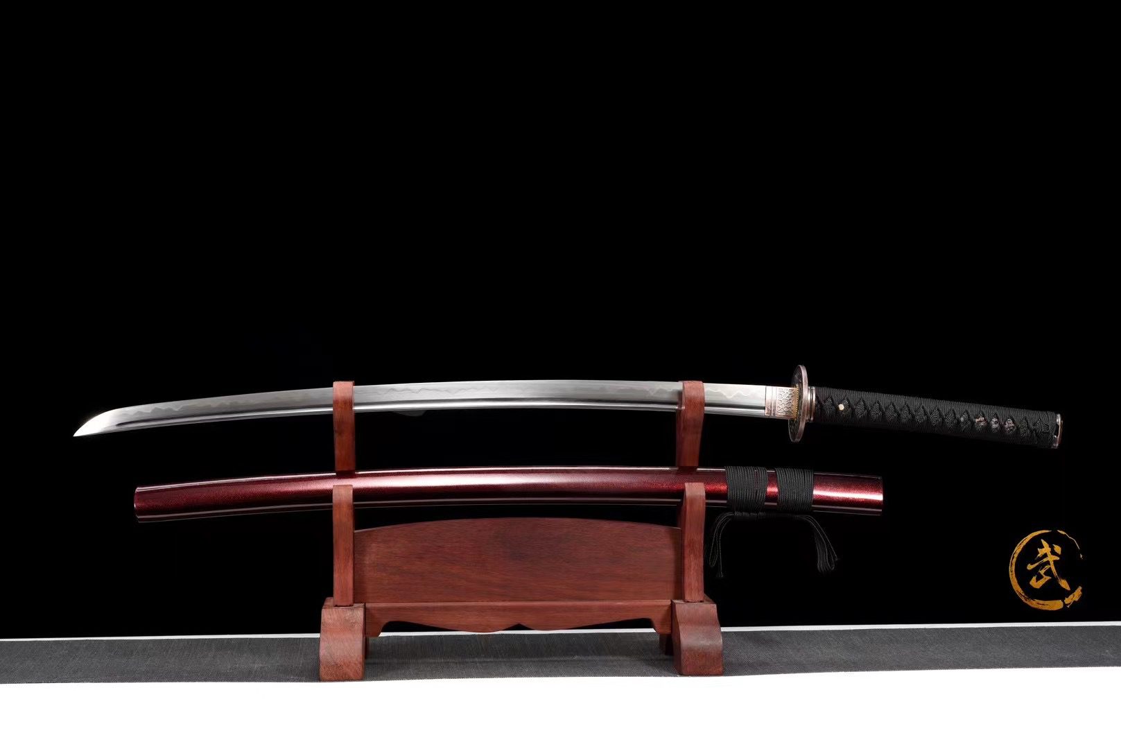 - Tsuka-ITO (柄糸): black braided diamond pattern above the handle.