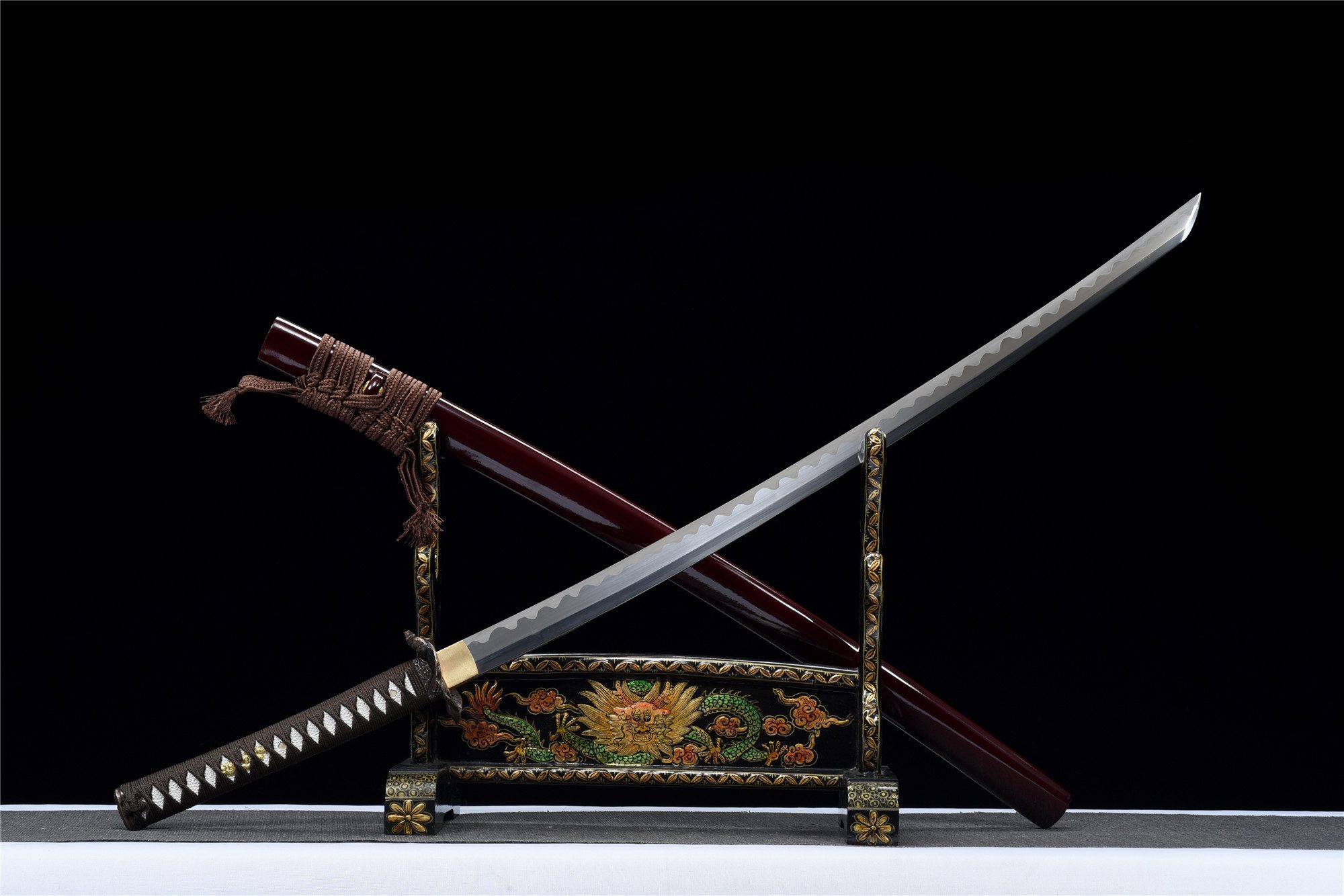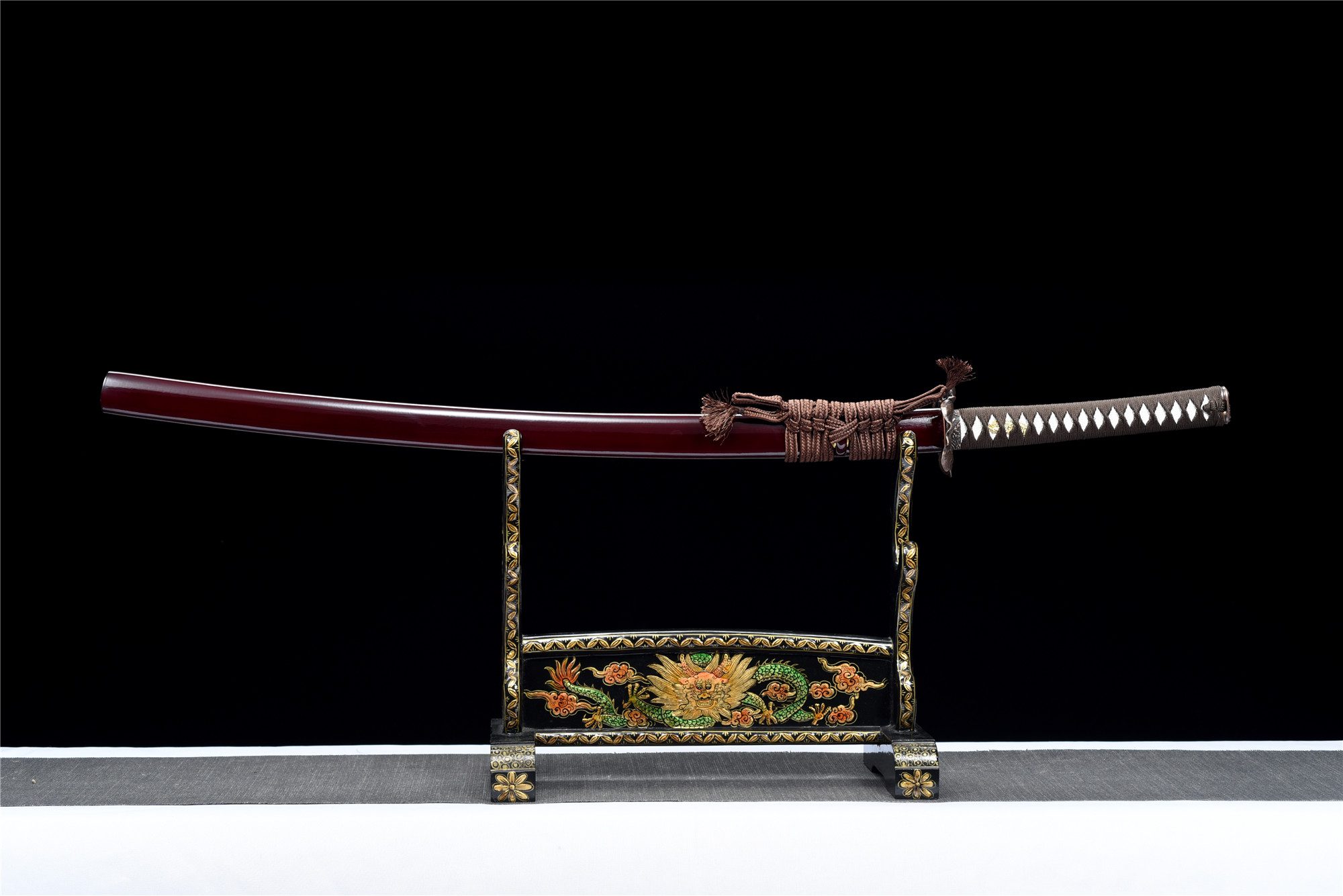 - Scabbard (Saya 鞘): Red lacquered wood.