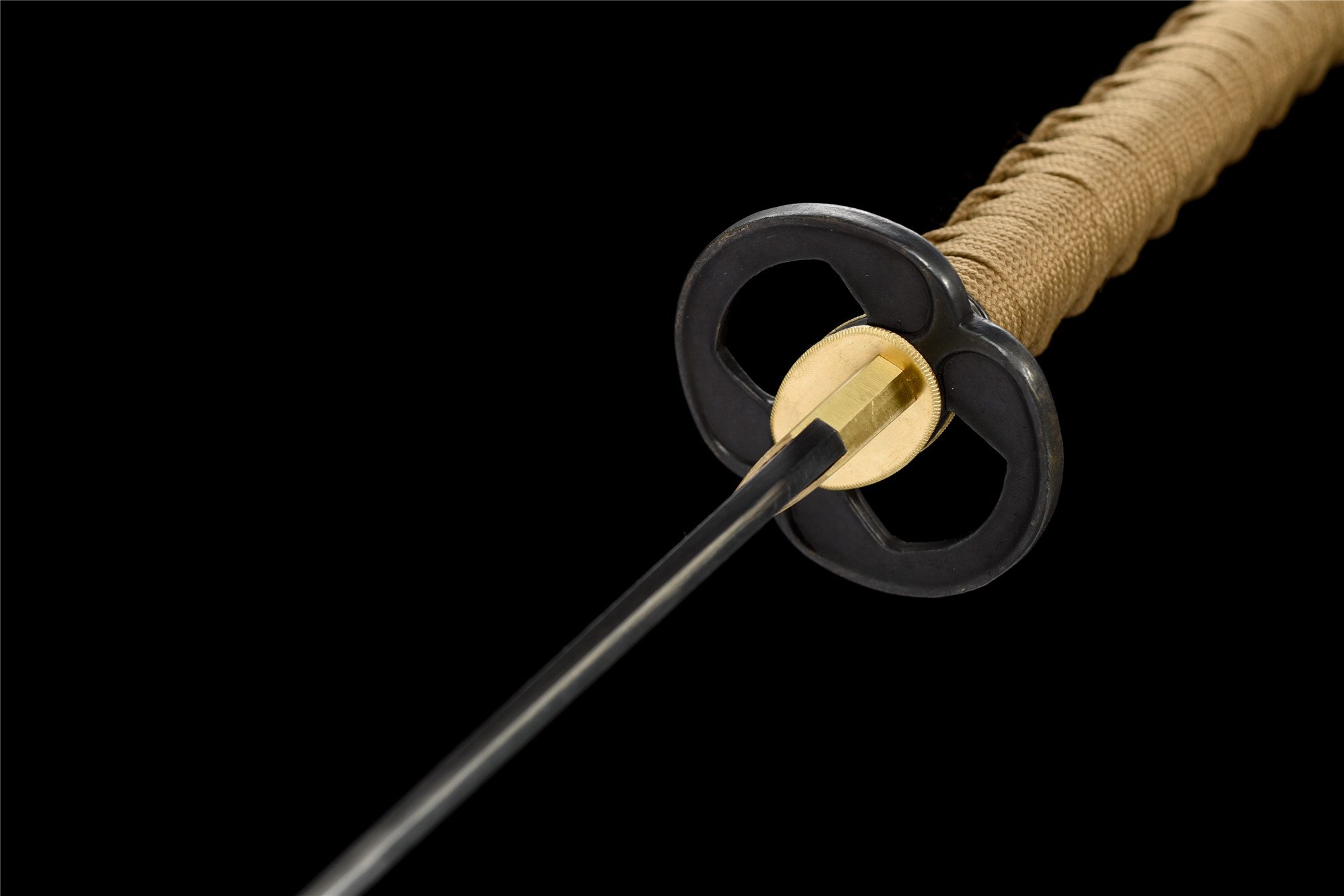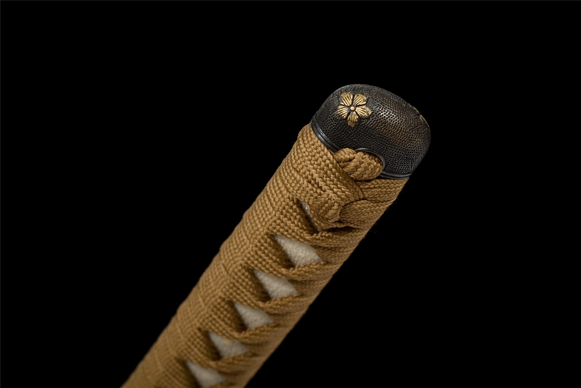- Tsuka-ITO (柄糸): Gilded brown braided above the handle.