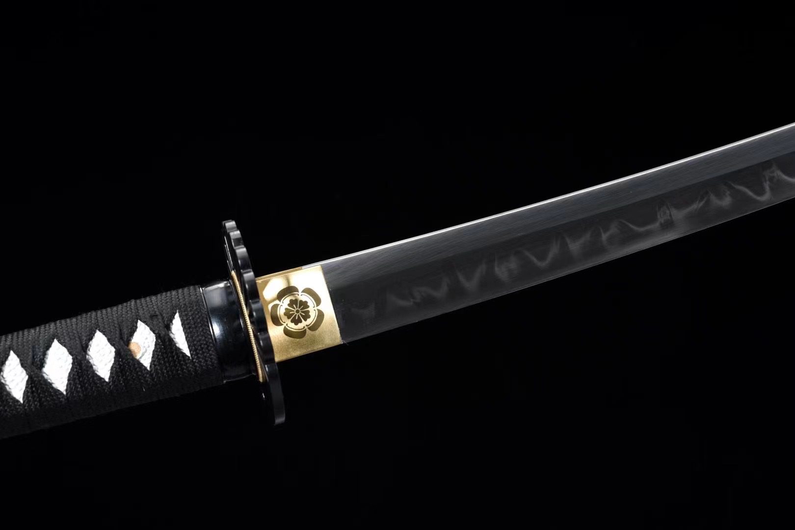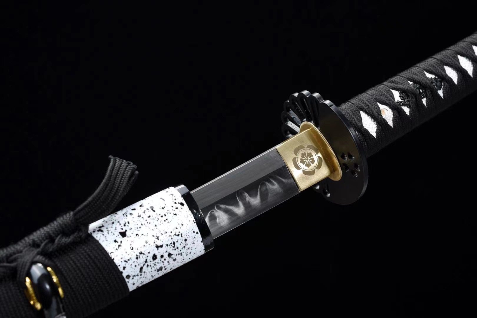 - Tsuka-ITO (柄糸): black braided in a diamond pattern above the handle.