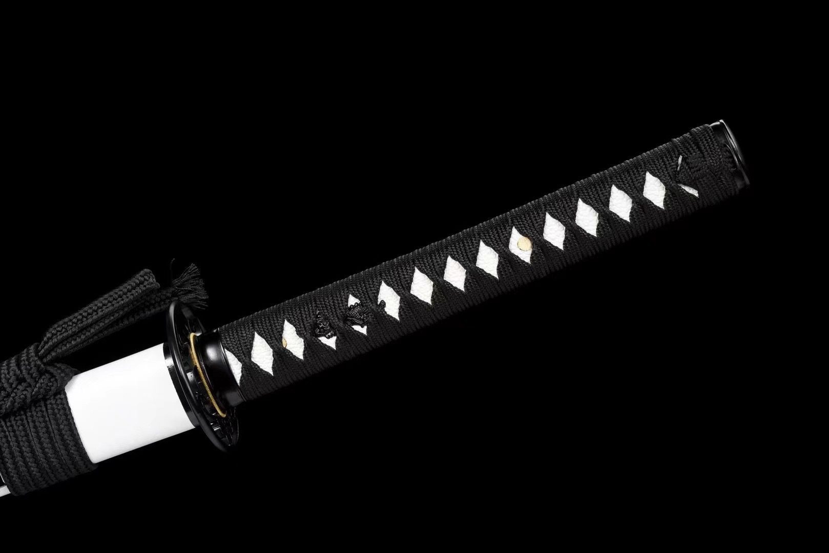 - Tsuka-ITO (柄糸): Black diamond pattern weave above the handle.