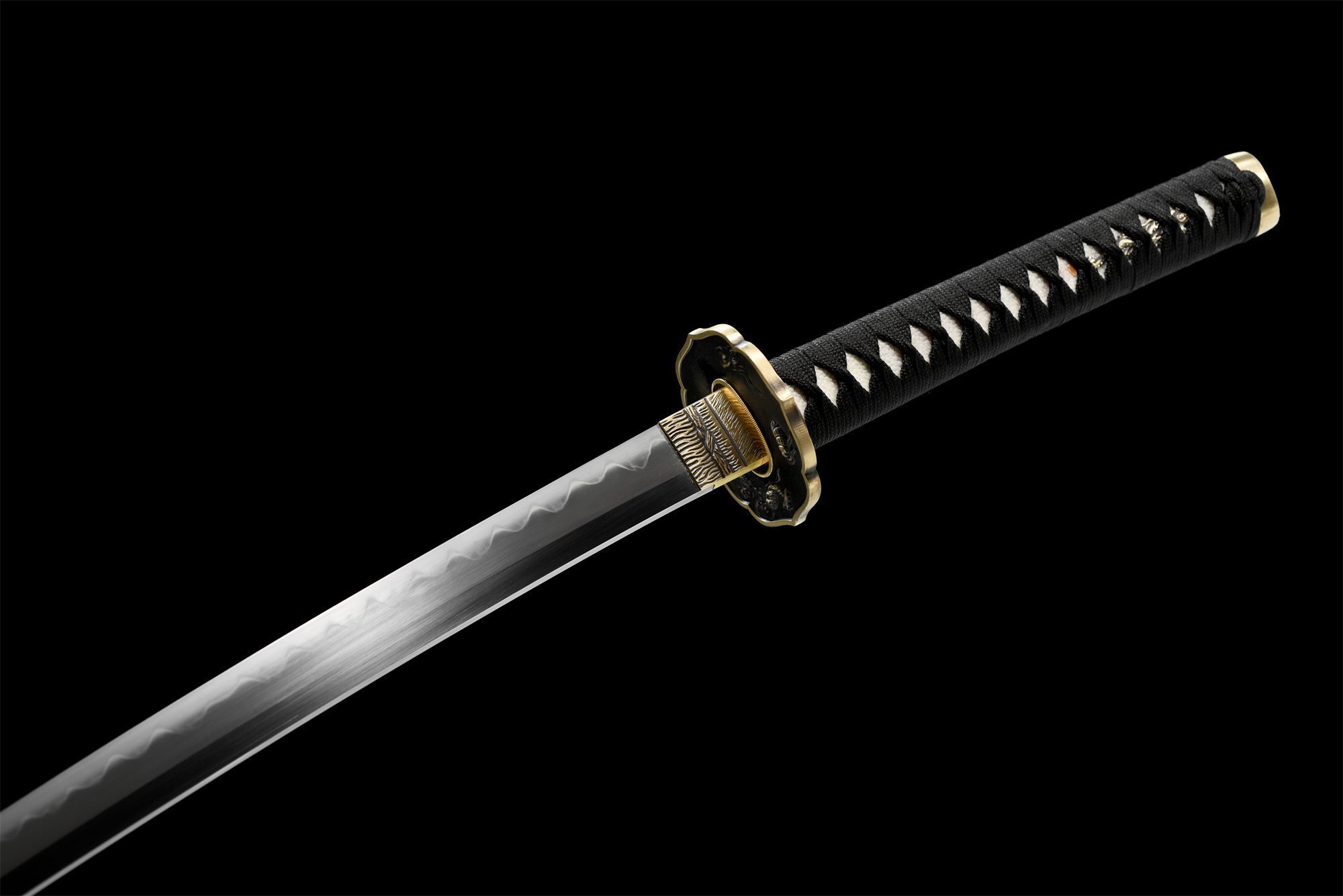 - Tsuka-ITO (柄糸): Black weave in traditional diamond pattern.