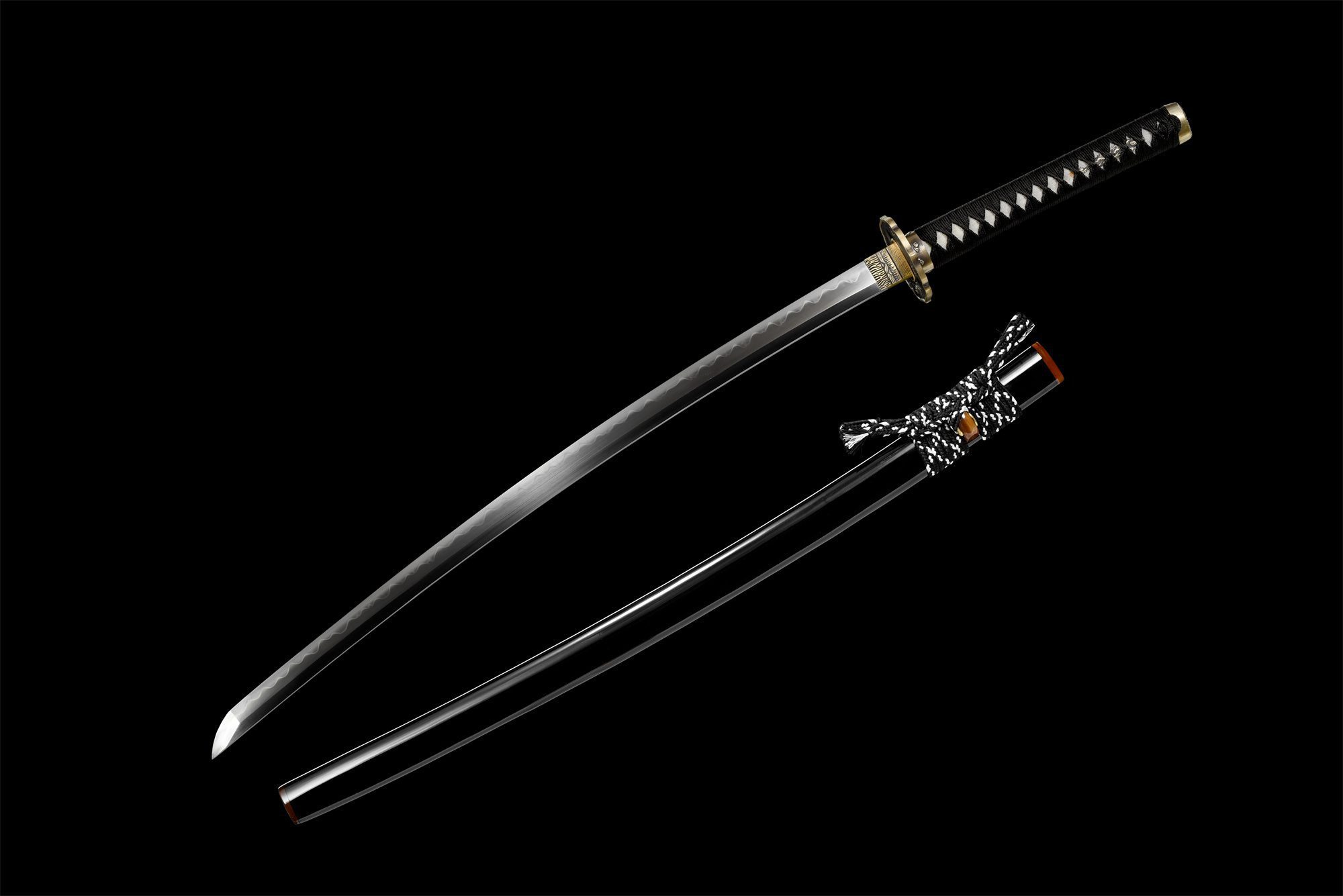- Scabbard (Saya 鞘): Black lacquered wood with Koiguchi and sageo ring made of genuine horn.