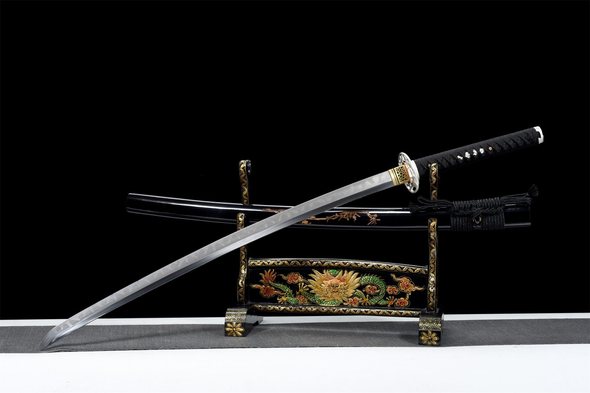 - Scabbard (Saya 鞘) : Black lacquered solid wood scabbard with bamboo painting.